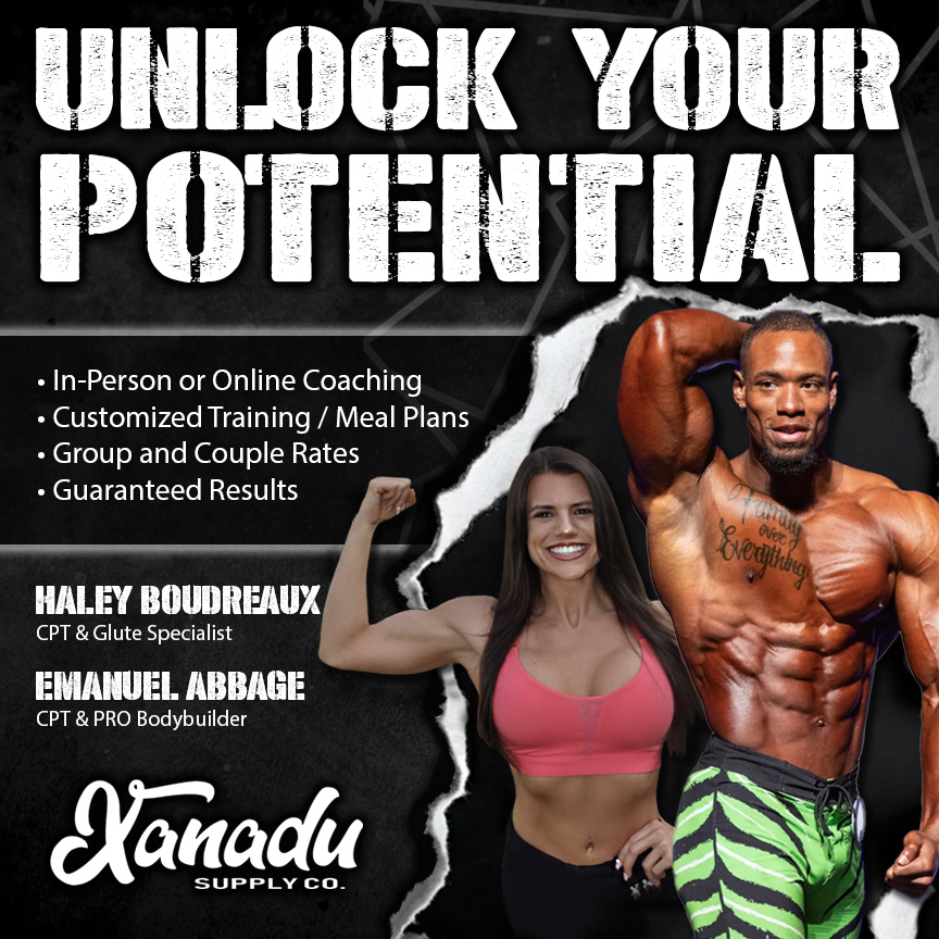 Haley Boudreaux, CPT / Glute Specialist & Emanuel Abbage, CPT / PRO Bodybuilder offer in-person or online lifestyle & bodybuilding coaching, customized training & meal plans to help you unlock your potential.